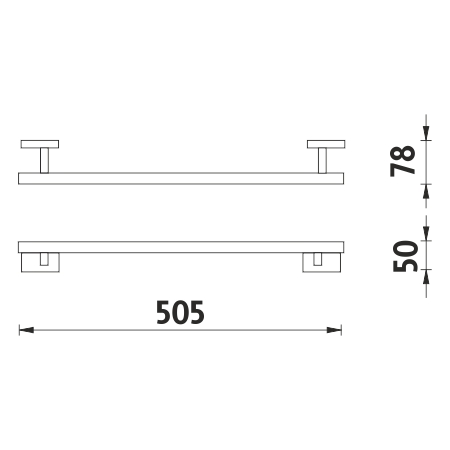 Towel holder. 505 mm long. Internal width for towels 400 mm. Made of brass / chrome.