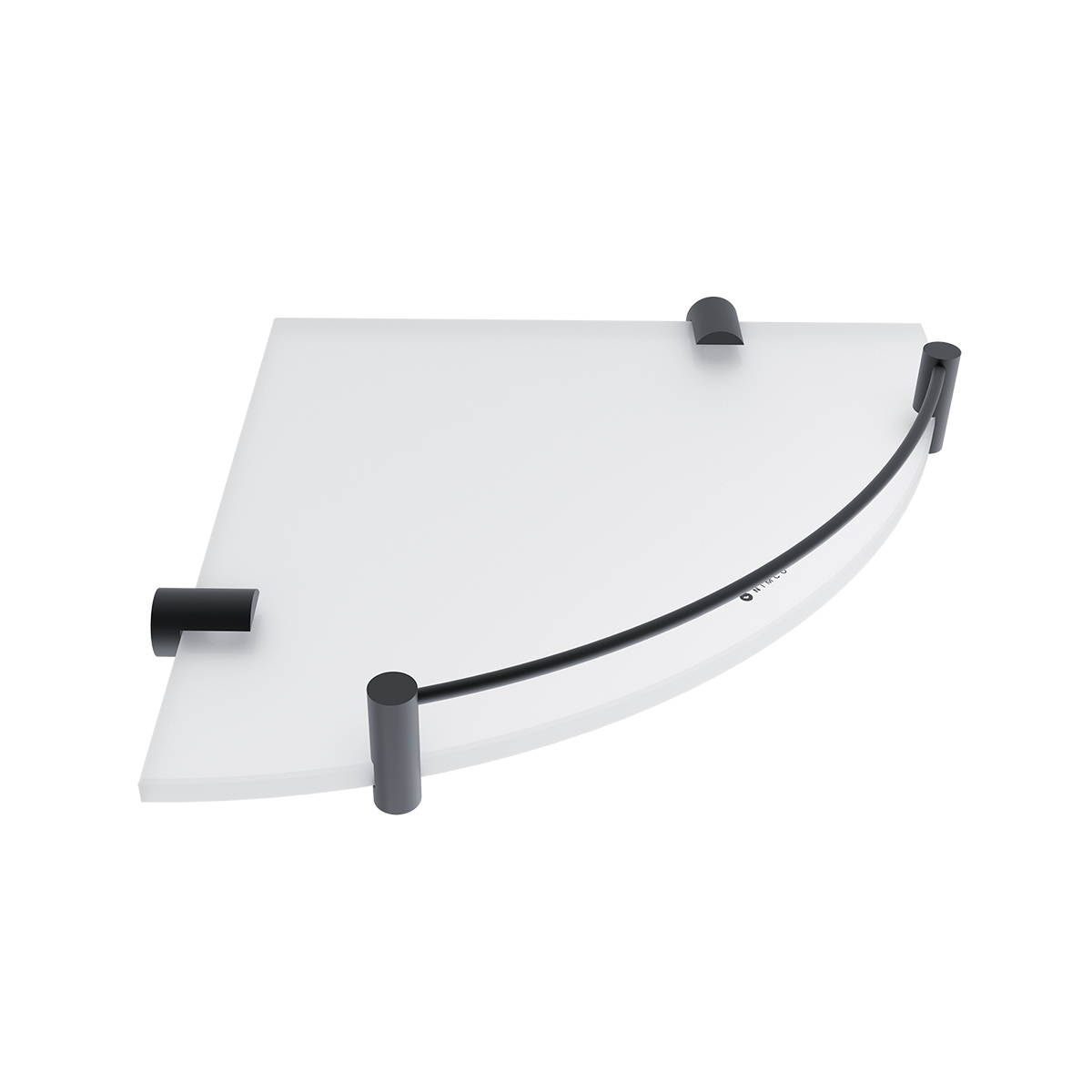 Černá rohová police s ohrádkou. Sklo extra čiré matné. Tloušťka skla 8 mm!