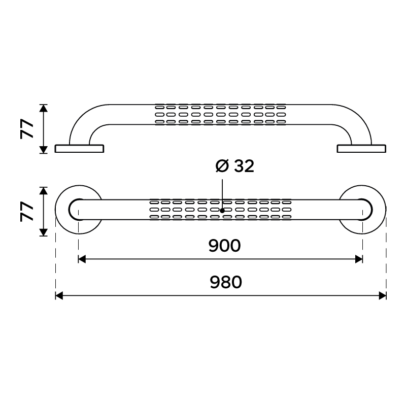 Průměr 32 mm. Povrch barva černá matná. Nerezová ocel 18/8.