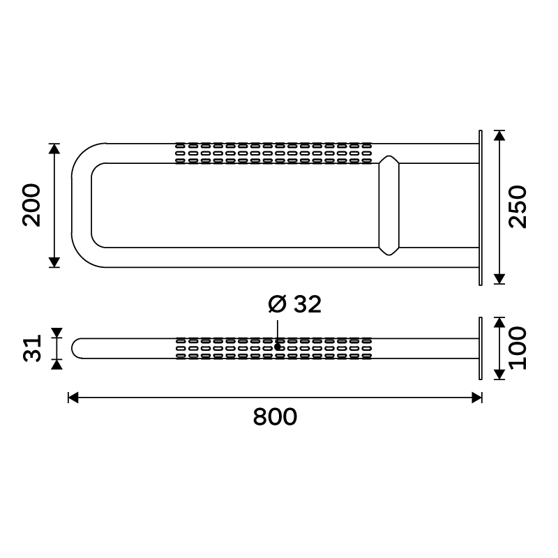 Černé pevné podpěrné madlo 800 mm