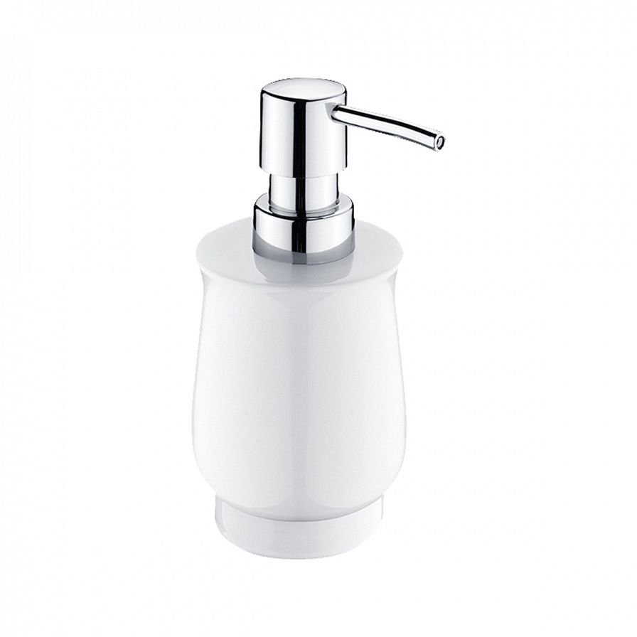 Keramický dávkovač na tekuté mýdlo. Objem 300 ml. Pumpička plast. Povrchová úprava chrom.