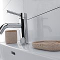 Dóza na kosmet. tampóny nebo jiné potřeby. Barva pískově béžová. Materiál polyresin, bambus. dřevo.