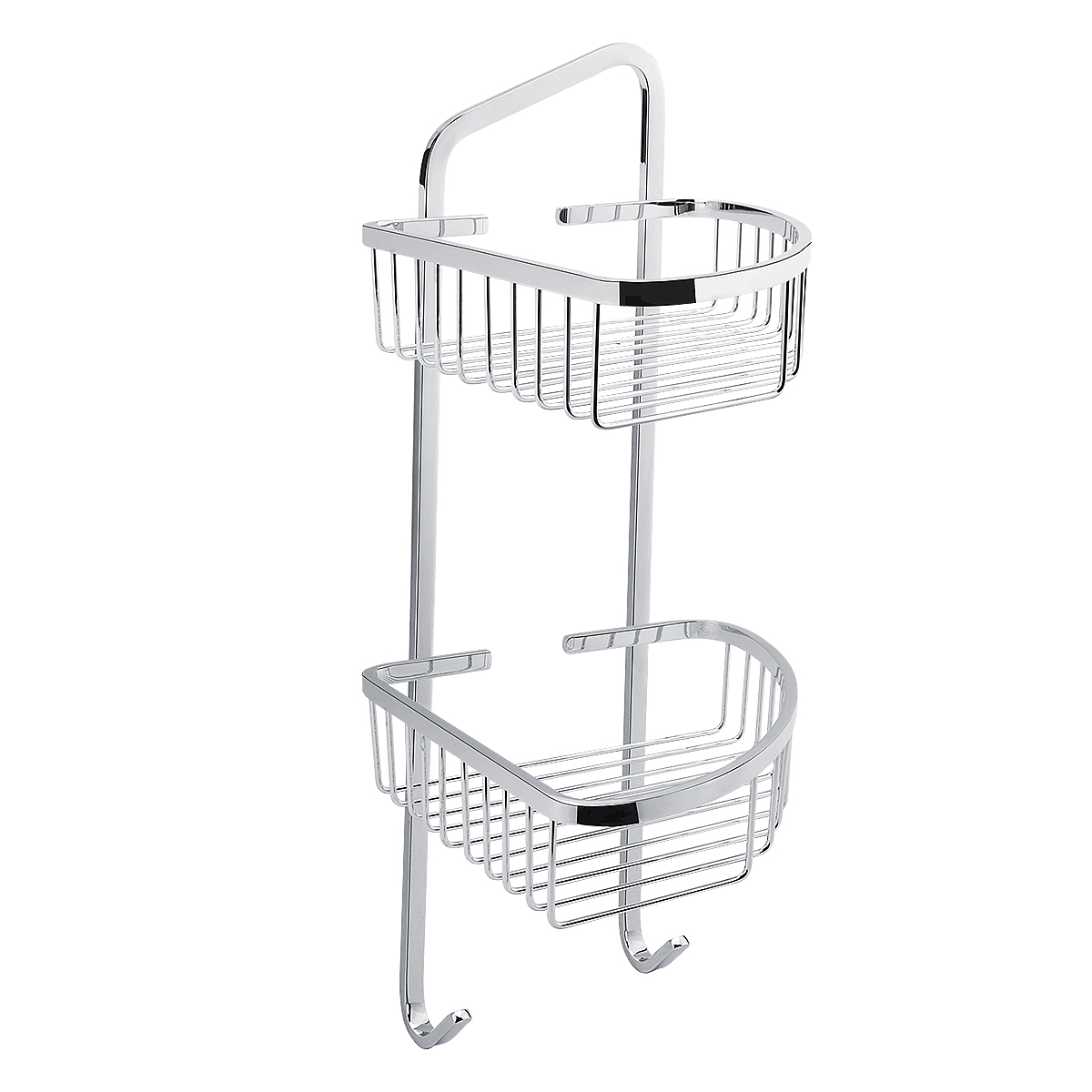Drátěná dvoupatrová rohová police k vaně a do sprchového koutu.