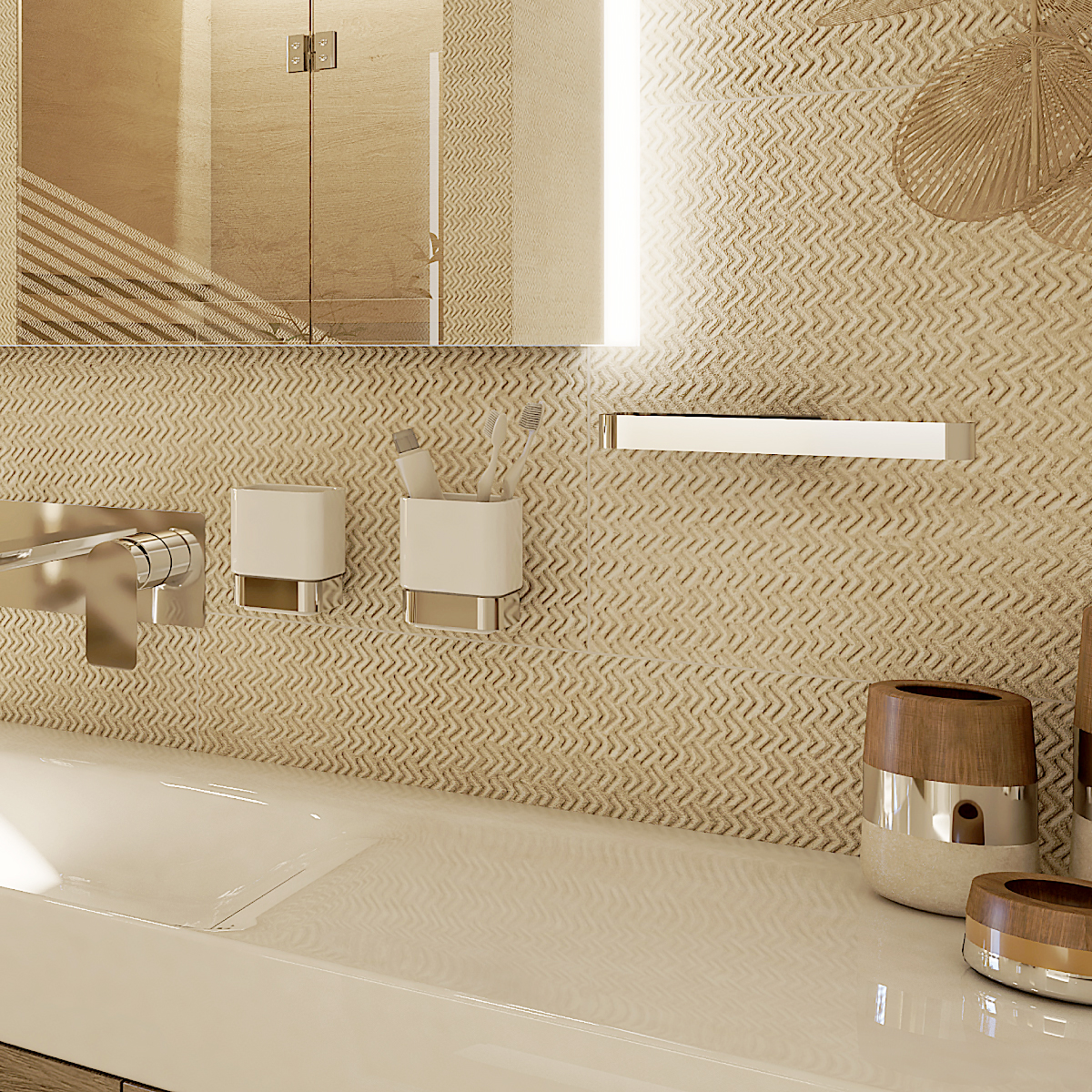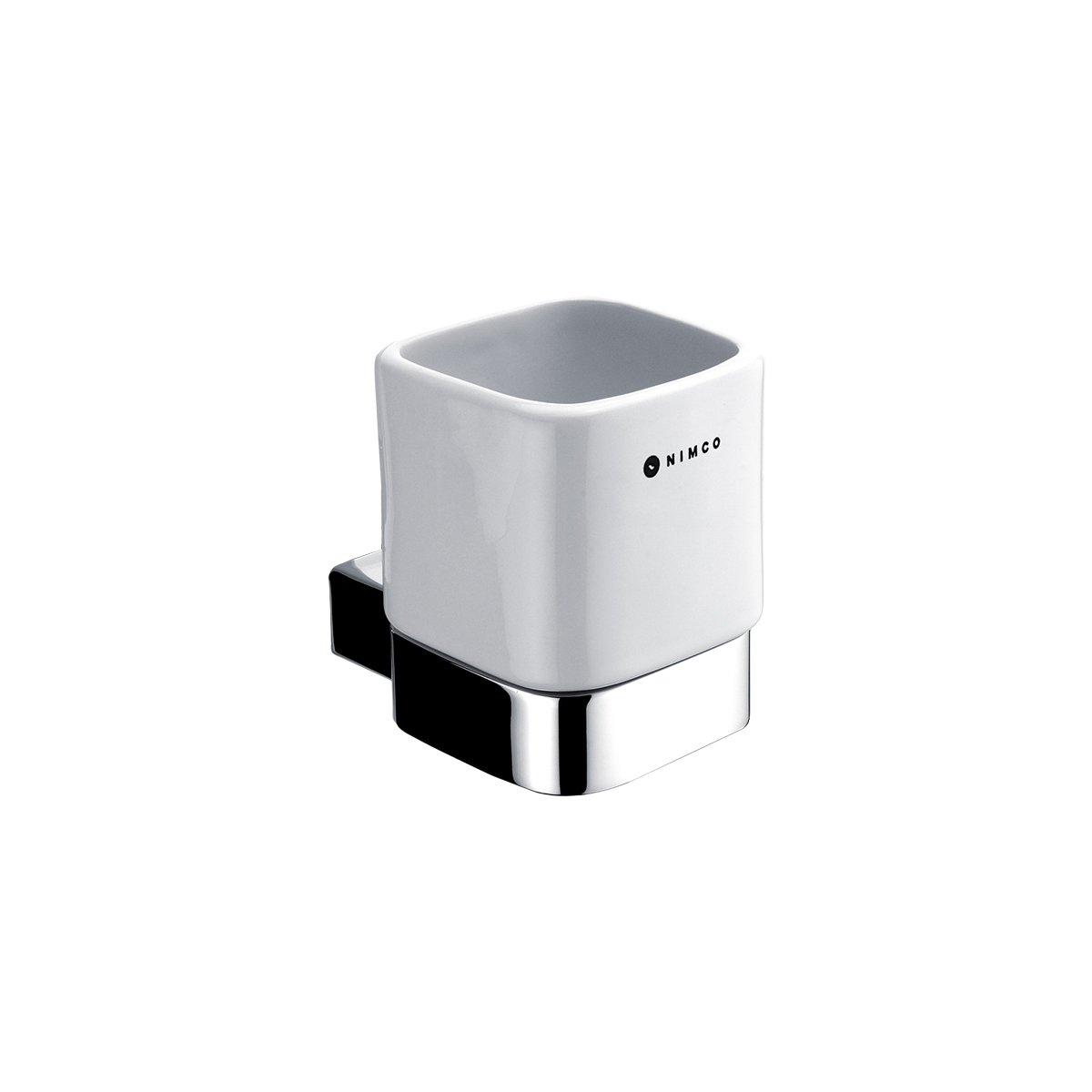 Držák na kartáčky s keramickým pohárkem. Úchyt mosaz s povrchovou úpravou chrom.