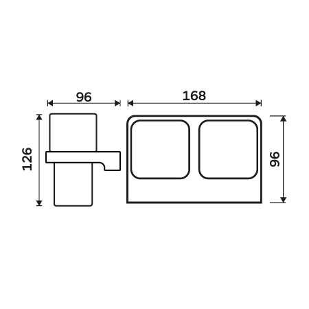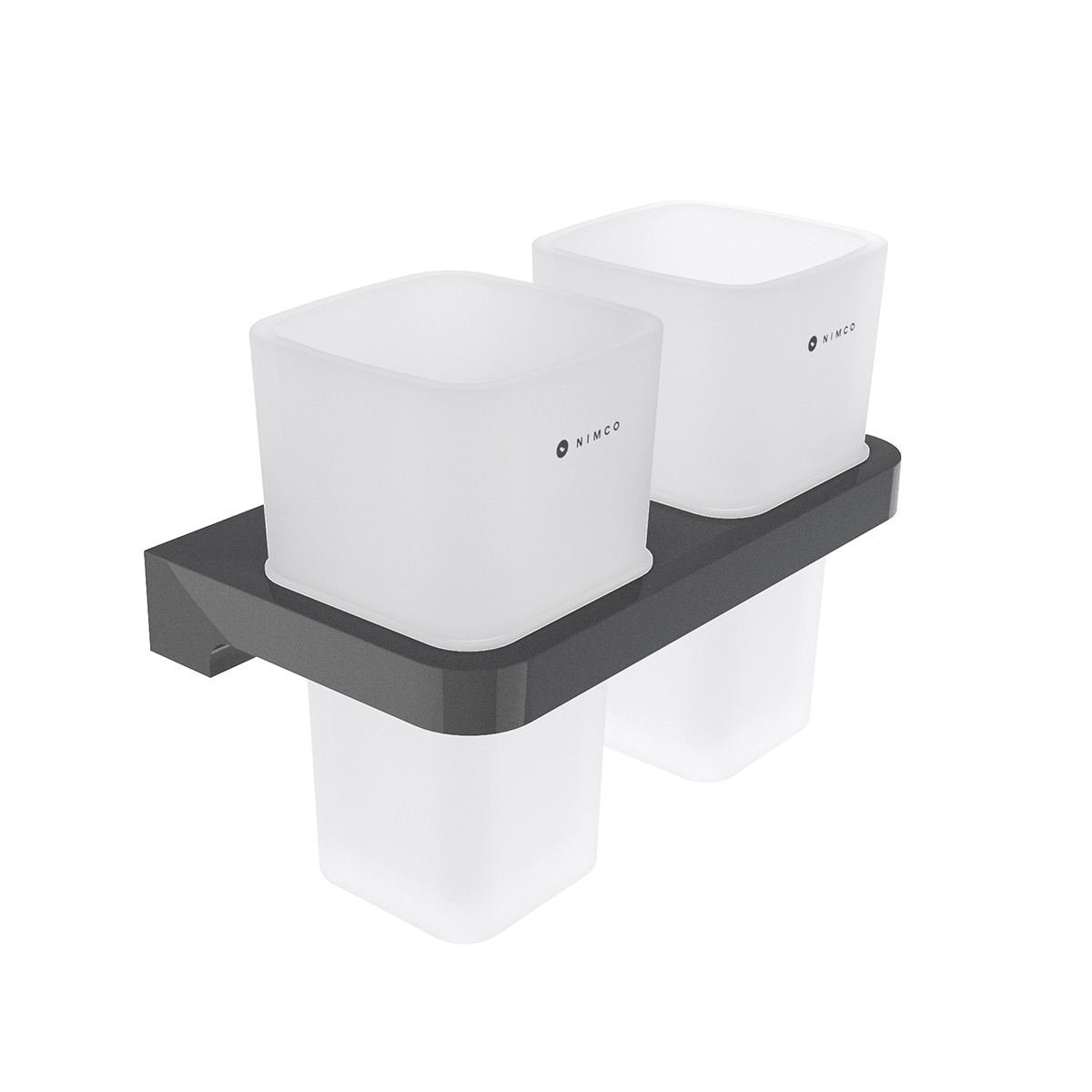 Dvojitý držák na kartáčky. Pohárky z matného skla.