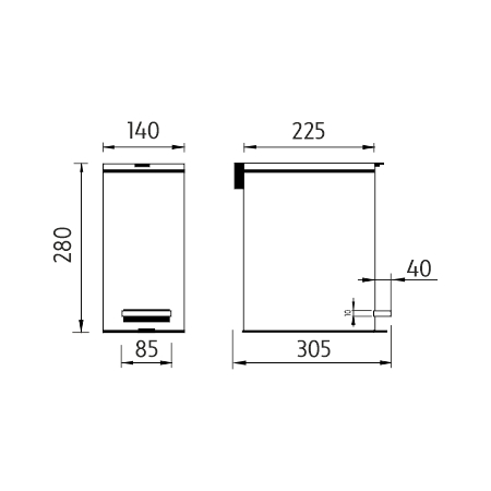 Koš odpadkový s vyjímatelnou nádobou. Objem 5 l. Povrchová úprava těla i pedálu bílý mat. Tiché soft close zavírání.