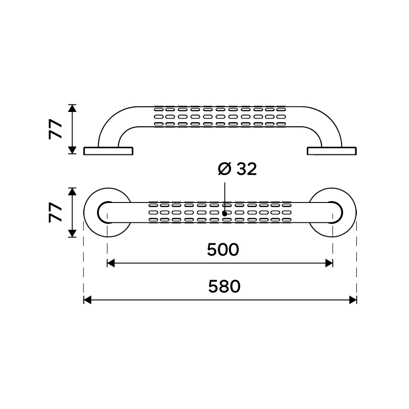 Průměr 32 mm. Povrch kartáčovaný - mat. Nerezová ocel 18/8.