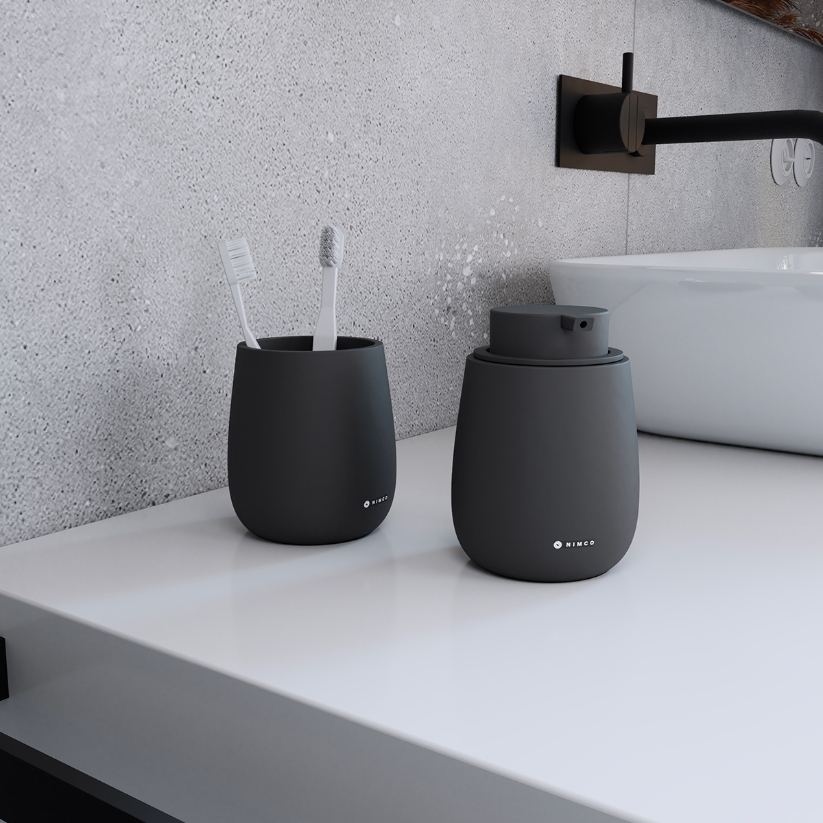 Pohárek na kartáčky. Černý matný. Soft-touch povrch.