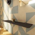 Police s frézovanými otvory. Police plexiglass, matný povrch. Šířka police 60 cm.