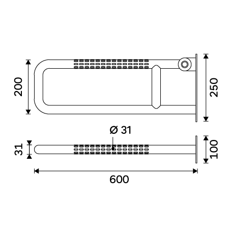 Tvaru U. Průměr 32 mm. Povrch kartáčovaný - mat. Nerezová ocel 18/8.