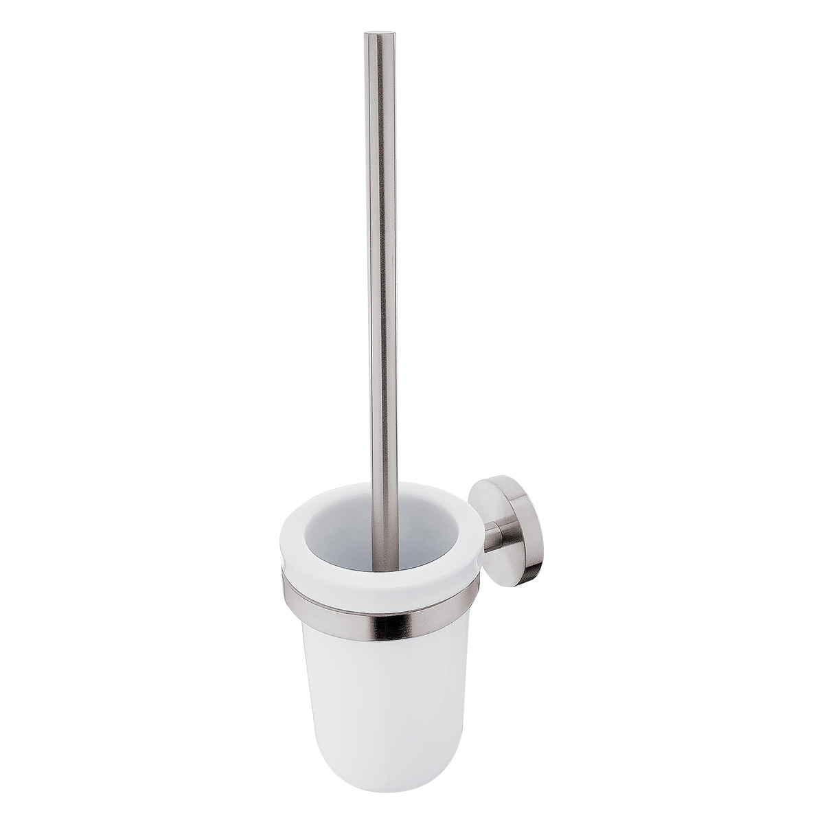 WC štětka. Úchyt broušená nerez. Nádobka nízká keramická.