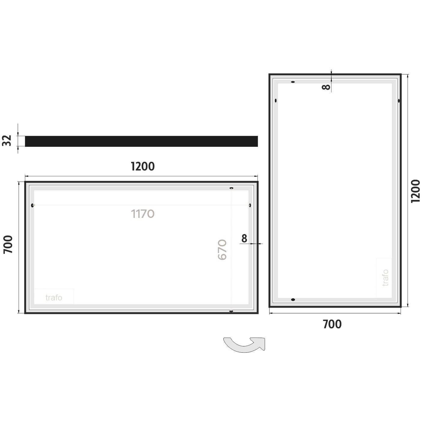 Illuminated bathroom LED mirror. Output 55 W, color temperature 4000 K. 3960 Lumens.