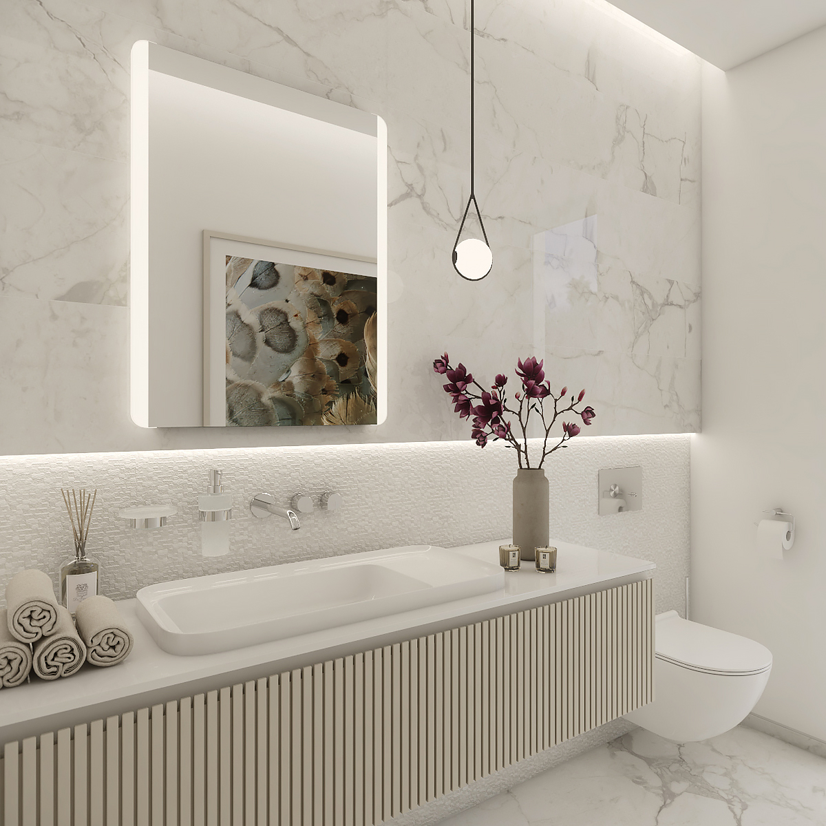 Illuminated bathroom LED mirror. Output 16 W, temperature 6500 K. 1760 Lumens.