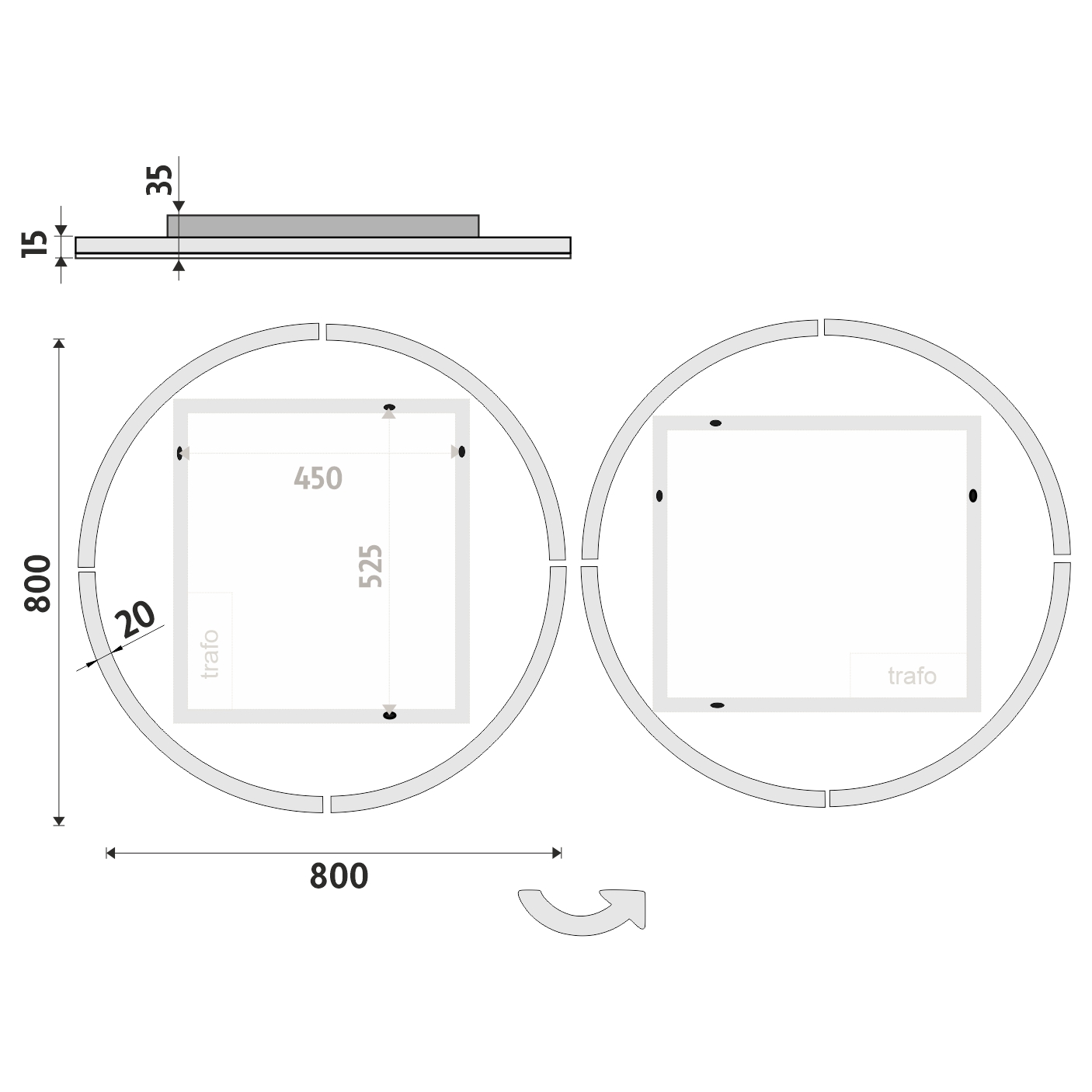 Illuminated ROUND bathroom LED mirror. Output 29 W, color temperature 6500 K. 2088 Lumen
