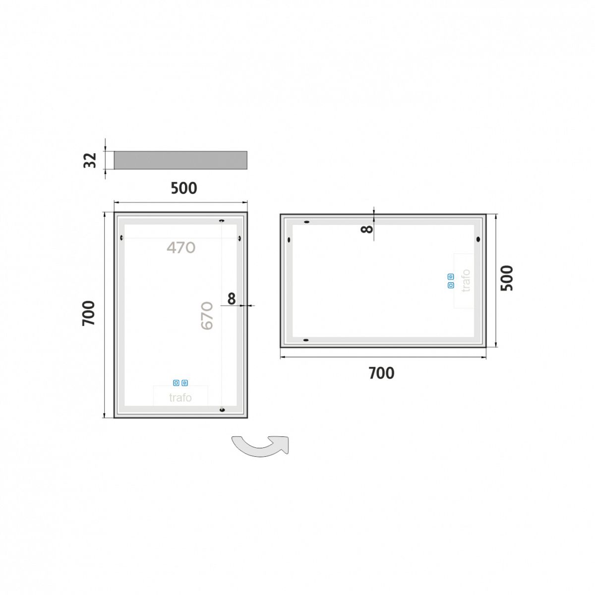 Illuminated bathroom LED mirror. Possibility of setting color temperature from 3000 to 6500 K. The possibility of setting the luminosity intensity. Output 35 W. 2520 Lumens.
