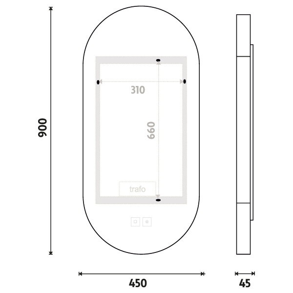 Bílé LED zrcadlo 450x900 se dvěma dotykovými senzory