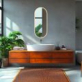 Oválné zrcadlo s rámem a s celoobvodovým svícením pro dokonalé a rovnoměrné osvětlení.
