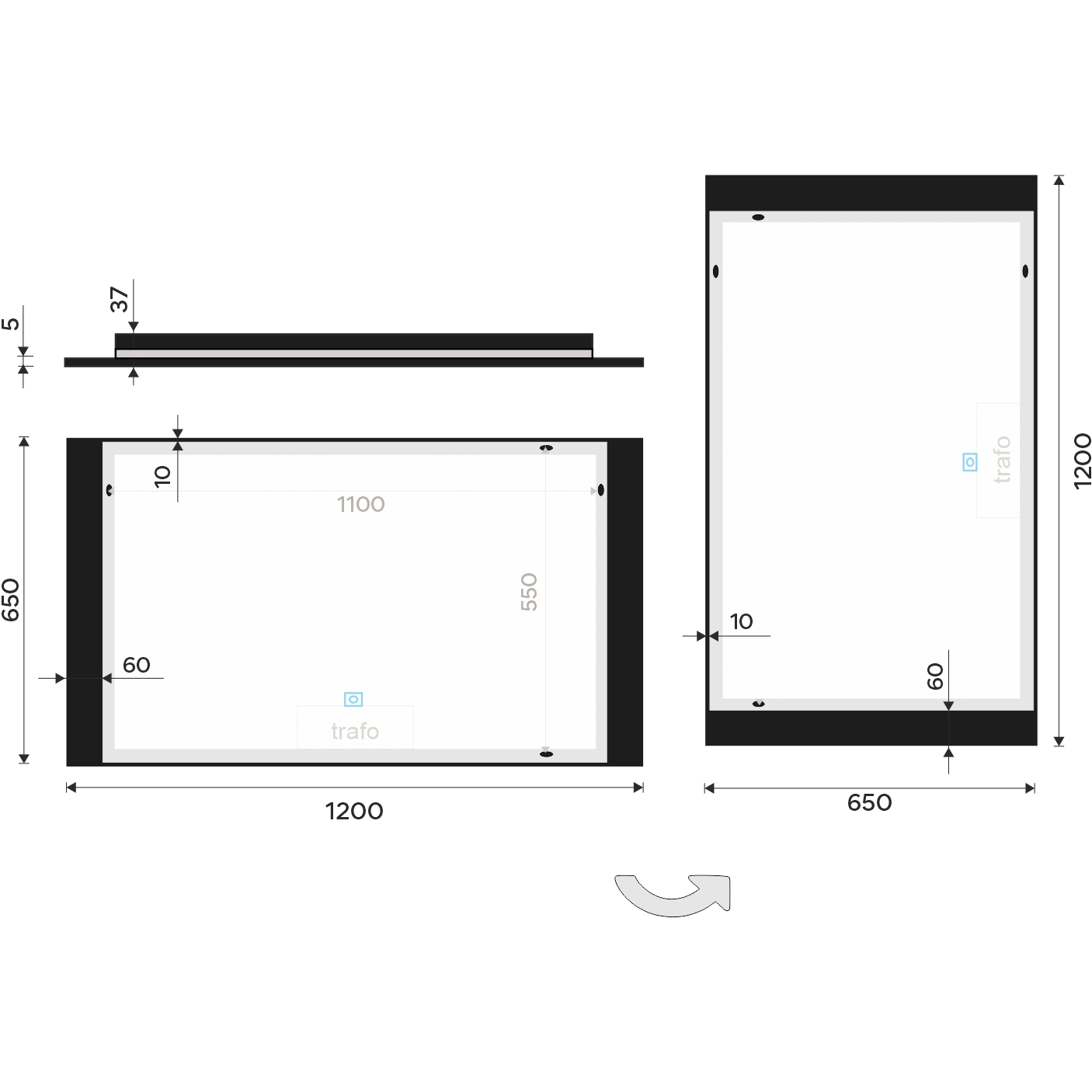 Černé LED zrcadlo 1200x650 s dotykovým senzorem
