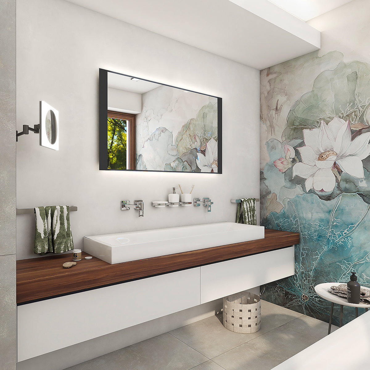 Koupelnové podsvícené LED zrcadlo. Příkon 33 W. Možnost nastavení barevné teploty od 3000 - 6500 K. 2376 Lumen.