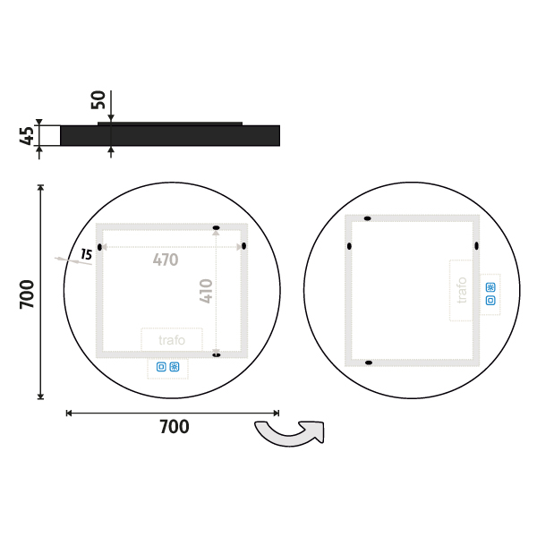 ČERNÉ LED zrcadlo pr. 700 se dvěma dotykovými senzory