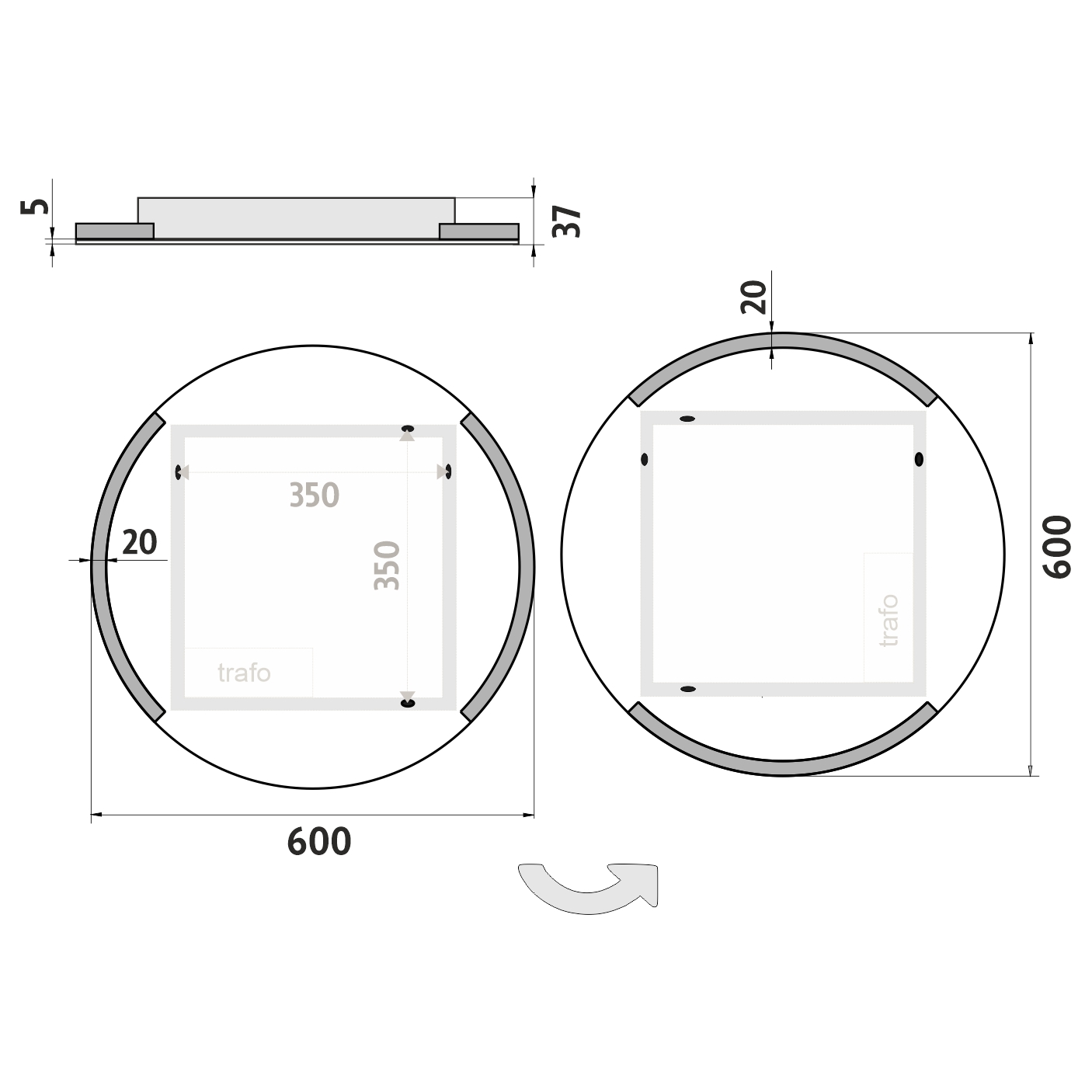 - Konstrukce podsvícení: K rovnoměrnému rozptylu světla zrcadlo disponuje difuzorem z akrylového skla