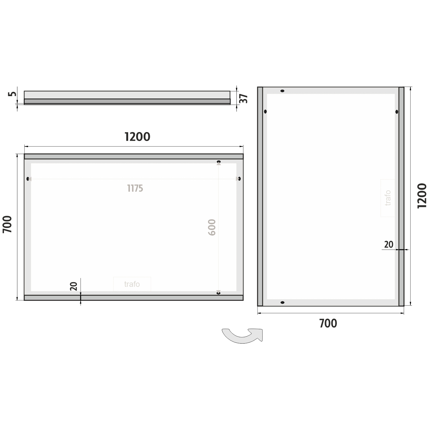 - Konstrukce podsvícení: K rovnoměrnému rozptylu světla zrcadlo disponuje difuzorem z akrylového skla