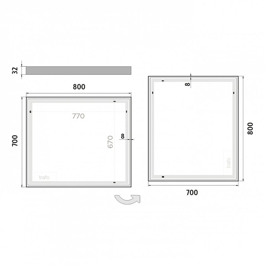 Pro dosažení kvalitního a rovnoměrného svícení je použit akrylový difuzor, který zajišťuje měkký a harmonický rozptyl světla bez viditelných bodových zdrojů. LED diody jsou vkusně integrovány do rámu spolu s difuzorem, což přispívá k elegantnímu a čistému vzhledu zrcadla.