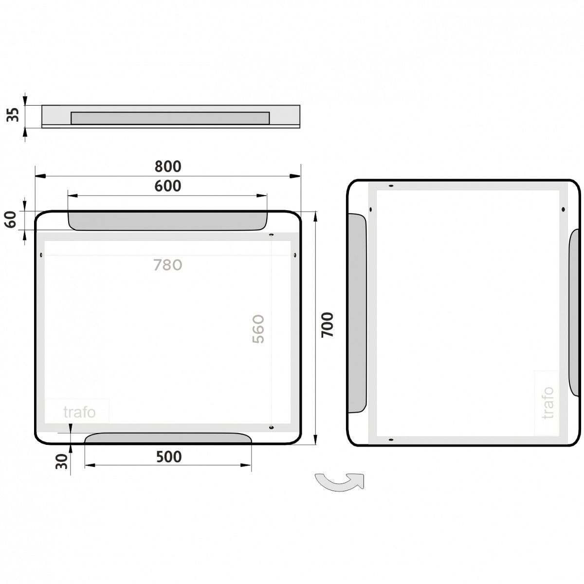 Koupelnové podsvícené LED zrcadlo. Příkon 16,5 W, barevná teplota 6500 K. 1188 Lumen.