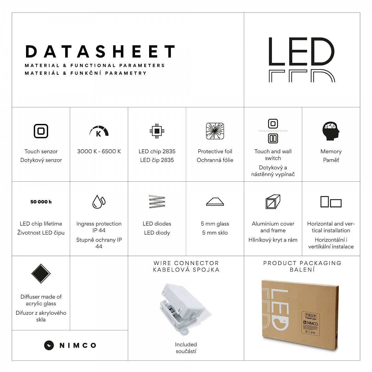 Koupelnové podsvícené LED zrcadlo. Příkon 13,5 W. Možnost nastavení barevné teploty od 3000 - 6500 K. 972 Lumen.